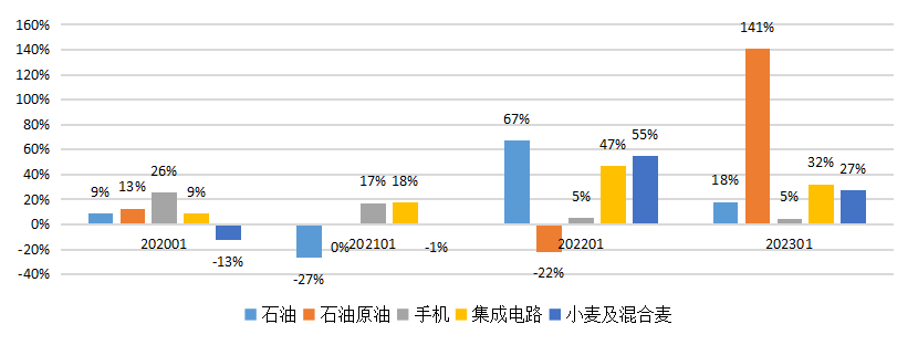 另一方面,中国对印尼出口商品呈现出较强的波动性。以前5大商品为例,2023年1、2月,该5类商品的出口均出现同比负增长,3月有所恢复,已回到1月的出口水平。如下表8所示:手机出口2022年前,同比多处于增长状况,2022年初有所回落,2023年1月的出口2.35亿美元,回到了2019年的水平;推土机、机织物和电脑的出口在去年1月分别有同比4倍、1.6倍、0.8和1倍的增长,但在今年1月同比均下降,其中电脑出口同比下降幅度最大,只相当于去年1月的一半。
