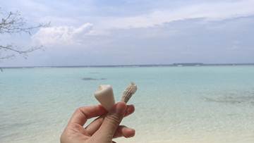 早上的浮潜结束之后,我们来到了僻静的小岛上解决午餐。随行的船员们因地制宜,就地取材,将新鲜的海鱼用海水清洗干净,放在简易的炉子上慢慢烘烤。此时,耐心成了最好的调味料。在等待午饭期间,我们在水清沙白的沙滩上沐浴着阳光,与海水尽情地嬉戏。仔细寻找还会在清澈的海水下面发现被打磨得雪白雪白的贝壳和海螺。但是,千万不要把它们带走,因为那是大自然赠予这个地方的珍贵礼物。